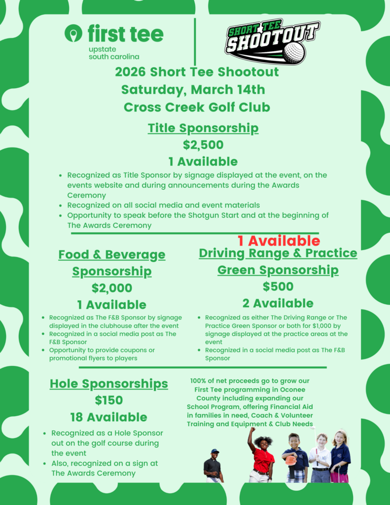 - 100% of money raised from string and mulligans sales will go to First Tee — Upstate South Carolina